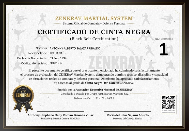 Su grado ha sido validado y reconocido por el Consejo Técnico Nacional de ZENKRAV, formando parte del registro institucional oficial.