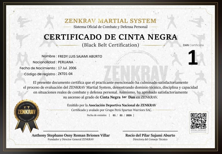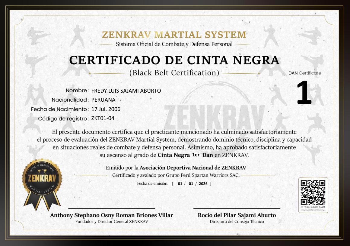 El presente instructor se encuentra oficialmente registrado dentro del sistema ZENKRAV Martial System, cumpliendo con los estándares técnicos, evaluativos y disciplinarios establecidos por la Dirección Técnica.