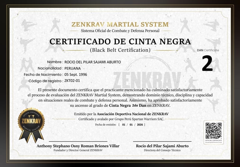Su grado ha sido validado y reconocido por el Consejo Técnico Nacional de ZENKRAV, formando parte del registro institucional oficial.